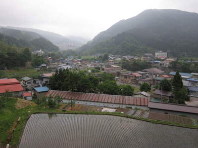 奥井さん運転のレンタカーで黒石へ向かいます。 東北自動車道が走る東の山沿いは雨の様子。