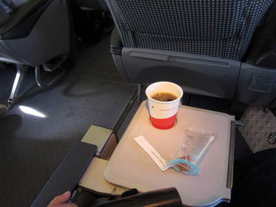半熟卵のオムライス+ハヤシだかなにかです。 飛行機が満員で「空弁」も気分じゃないのですが、昼食を普通のカレーや蕎麦で済ますのは悔しいのでせめてユニークな食べ物を!