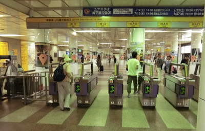 やはり新しい地下鉄だけに深いです。 節電でエスカレーターをけちっています。