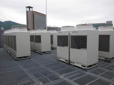 個別空調の室外機が屋上に並びます。
