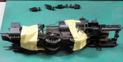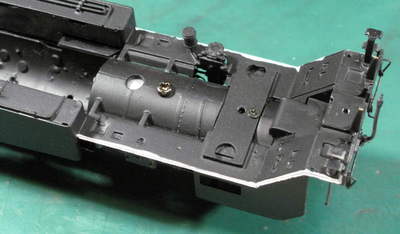 機関車全体に黒を塗す(まぶす)時ついでに塗りました。 空の票差しは黒塗装された鉄の票差し、票差し撤去の上砲金鋳物をその位置にボルトで固定する南九州仕様になりました。