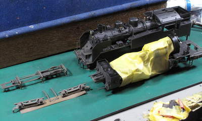 ポイントと言うべき「汚し色吹付け」のため集電に関わる部分をマスキングします。