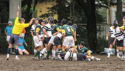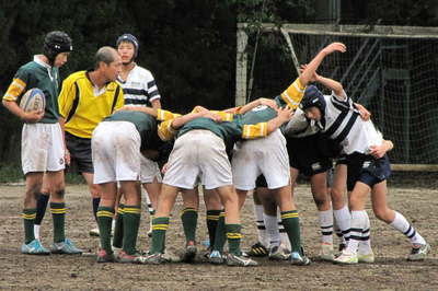 最初の集中力の立ち上がりが相手が一歩上です。 初めの2本のトライが残念です。