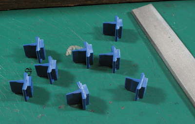 こちらは「当てモノ」(当てモノ;家具屋が輸送や納品時に使う・・・この模型ではティッシュやIMONのハイテククロス)を当ててドライバーややっとこでほぼ真っ直ぐに直しました。