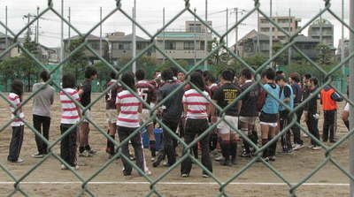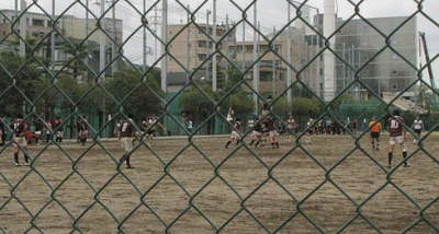 手前側ラインナウト。 葛西工業のグランドは目の前以外はゲームがよく判りません。