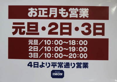 ↑大井店は正月この様に営業致します。