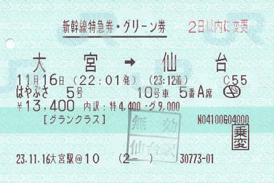 大宮 22:01 ―【はやぶさ5号】→ 23:12 仙台 (二次会は仙台です)