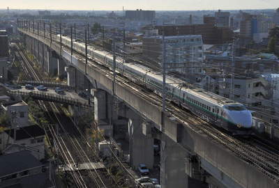 E5系大宮駅に進入、間もなく停車。