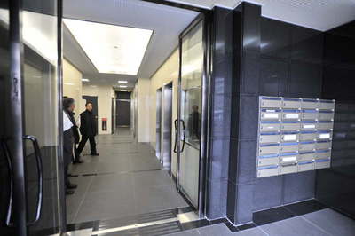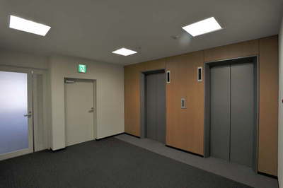 基準階のエレベーターホールです。 入居率100%と健闘して居ます。