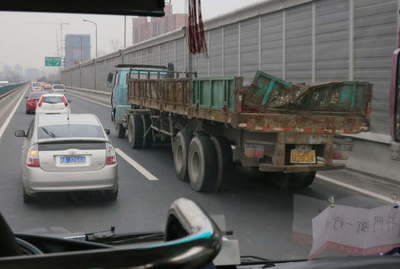 高速道路を帰りは休憩無しで上海へ向かいます。 トラック;ボンネットトラック。