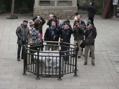 (その集合写真撮影中の朱さん) 我々はこの情景を見ながら集合写真に収まったわけです。