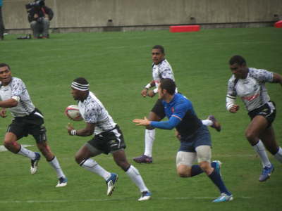 フィジーの応援団は歌を歌いっぱなしで頑張っていました。