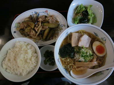 Cセット ラーメン(醤油・細麺)豚生姜焼き、ライスセットサラダ付¥980です。