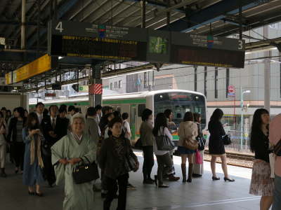 連休初日です。 渋谷駅埼京線ホームに湘南新宿ライン特別快速高崎行が入線してきました。