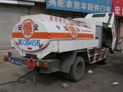 安全に爆発する器用なトラック。 (朝の給油写真でガソリン運搬車であることが判ります)