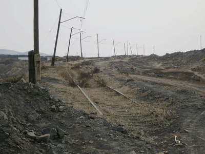 電化されたズリ捨て線(多分使われなくなってかなり経つ)です。
