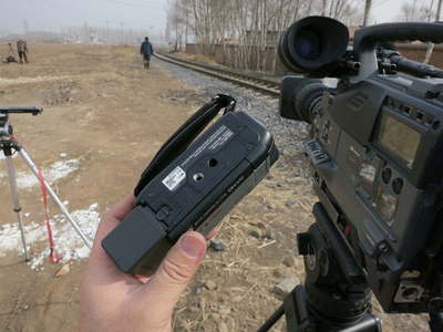 単機回送は五峰站で停車。 続けてやってくる積車の交換通過を待ちます。 (チビビデオの望遠端を使って撮影)