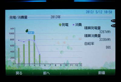 12年05月13日 11:49:00 | ノンジャンル昨年9月から稼働している太陽光発電パネルですが、今年こそは『太陽が高い季節』に稼働させることが出来ます。