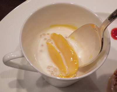 甲州地鶏と高山ウーロン茶風味のコンソメを注いで