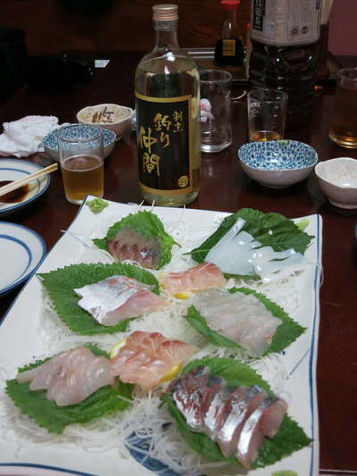 やはり中心はお刺身です。 もっとも唐揚げも驚くほど美味しかったです。(すみません鶏忘れました)