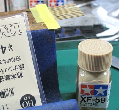 いつもは錆の表現に使って居る“レッドブラウン”ではなく、別の「黄色い茶色」で色差しした方がもっと良いでしょう!