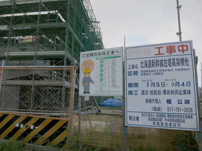 津軽半島を越えて津軽線へ向かう途中で見た建設中の北海道新幹線。