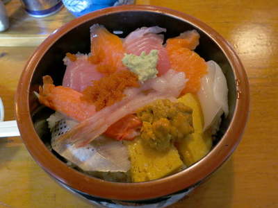 時間が昼食時間より少し遅い(1時半)ので親父さんが留守であるため「にぎり」ではなく「ちらし」になってしまいました。