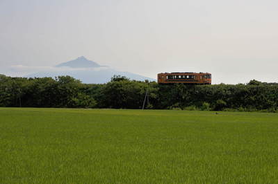 背後に見える利尻富士は岩木山です。