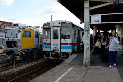 テレビ局は鉄道でこの地を去る我々を乗せた気動車を追います。