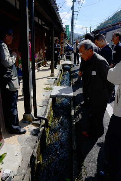江戸時代以前から道沿いの両側に上水道が流れ、炊事は此処で行うとのこと、裏通り側は下水道(昨日の保存会総会時に若桜町の建物の中央付近には中水道という紹介もあったかもしれません)
