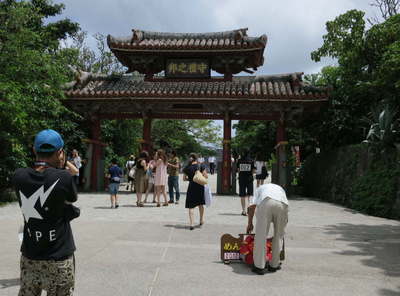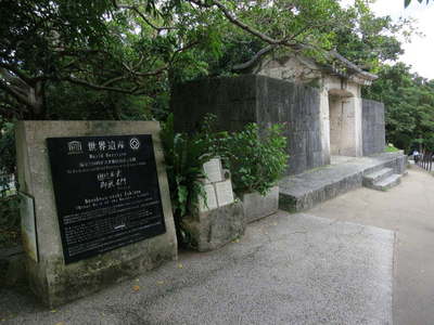 戦災を免れた世界遺産「園比屋武御嶽(そのひゃんうたき)石門」。