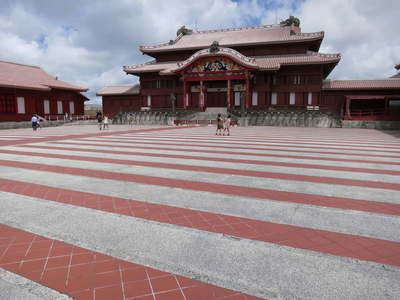 沖縄戦で焼失して再建された正殿と正殿前広場。