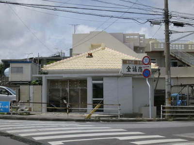沖縄の建物は、バルコニー、陸屋根、そして此処に白い瓦が現れました。