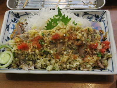 カツオのたたき 刻んだニンニクが効いていて素晴しい一品です。