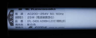 蛍光管に似せたLEDは片口で両極に給電する様になっています。 5000K昼白色です。