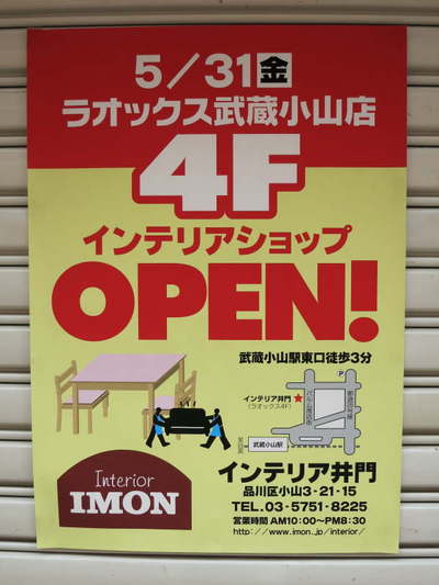 本日LAOX武蔵小山店4階にインテリア井門武蔵小山店をOPEN致しました。