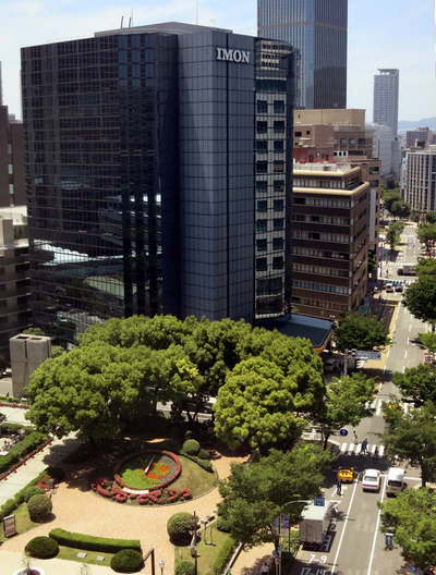 円筒部分(エレベーターなどが供用サービス設備が集約された部分)の外観が一新され「IMON」ロゴが付いています。