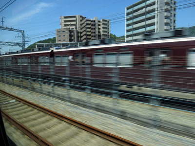阪急電車をあっという間に抜き去りました。