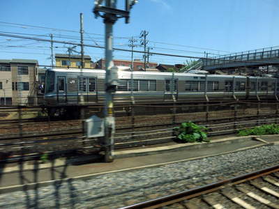 京都手前で並走。 同じ電車が桂川橋梁上でも並走しました。