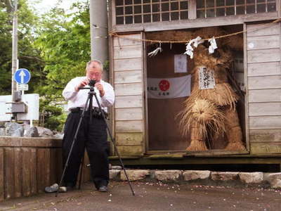 記撮のためにチビ三脚にコンデジを付ける井門。 隣のワラ人形とそっくり・・・