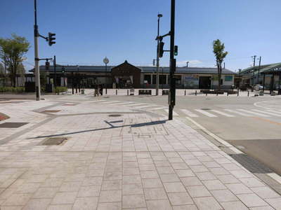 喜多方駅です。 買い出し担当は大きな白石車なのですがこの駅前角の酒屋に用事の友人が居たので・・・