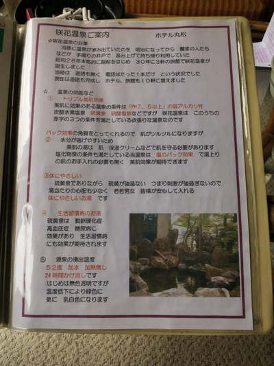 部屋に置いてあった咲花温泉の案内。