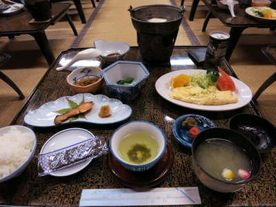 朝食です。 この後湯豆腐に火が入ります。