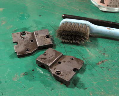 もう半田は使わなそうな部分ですので黒染磨きします。 廃物歯ブラシでガシガシ磨きながら黒染します。