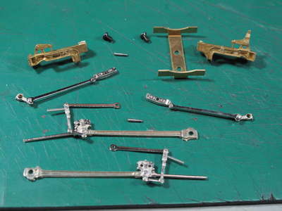 黒染完了。 あとで半田を流すスライドバー根元やリタンクランクは黒染しません。