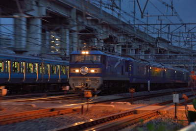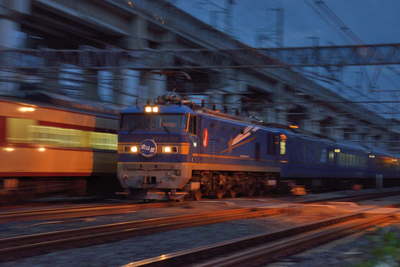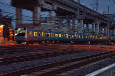 時折被る185系、今日は時間差がありました。 左は“たぬき”看板、遠方に【あけぼの】のテールライトです。