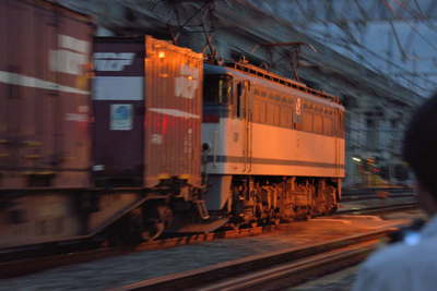 中間出陣です。 いきなり貨物列車が眼前を通ります。