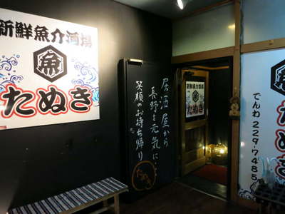長野市内に“たぬき”発見! 2階がお店のようです。