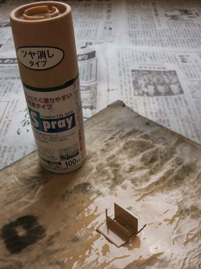 仕切に缶スプレーで塗装します。