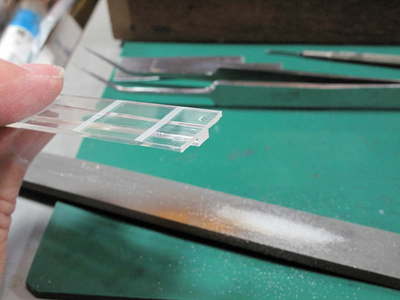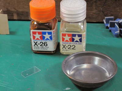 窓セル(←その実態は塩ビ板です)エナメルのクリヤとクリヤオレンジ。